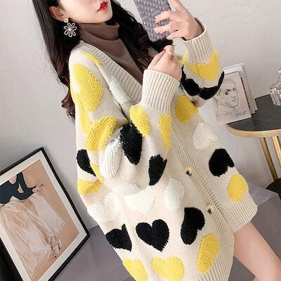 配色 ニットカーディガン レディース ニットカーディガン レディース アウター 秋冬 新作 ミディアム丈 羽織り ゆったり