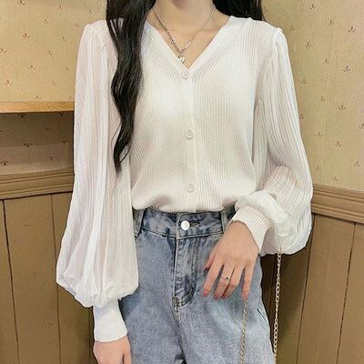 ニットカーディガンボリューム袖Vネック ニットカーディガン レディース アウター 秋冬 新作 ミディアム丈 羽織り ゆったり