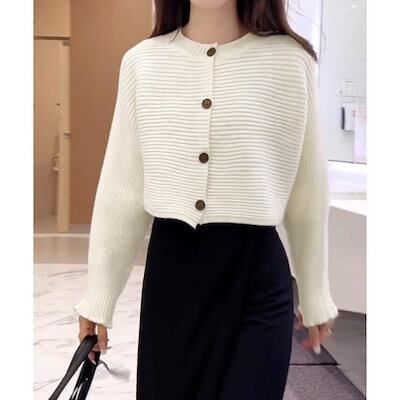 ドルマンニットトップス ショート丈ニット ニットカーディガン レディース アウター 秋冬 新作 ミディアム丈 羽織り ゆったり