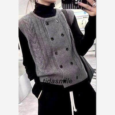 ニットベスト ジレ レディース 秋冬 春 前開き セーター オフィス ノースリーブ 通勤 アウター トップス 重ね着 羽織り 動きやすい 着痩せ