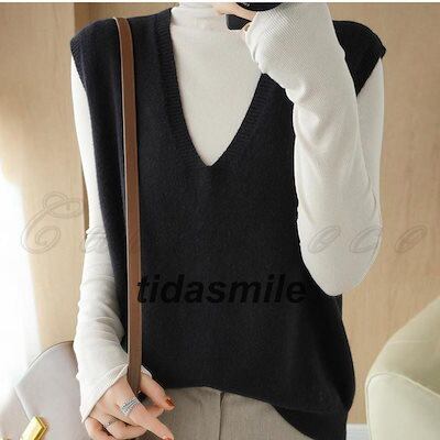 ニットベスト レディース ベストセーター 無地 Vネック ノースリーブ トップス カジュアル コーデ 暖かい ゆったり シンプル 春秋冬 おしゃれ