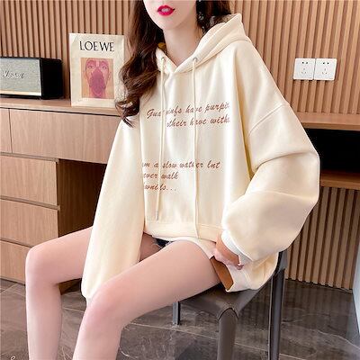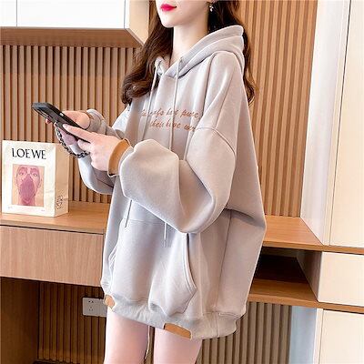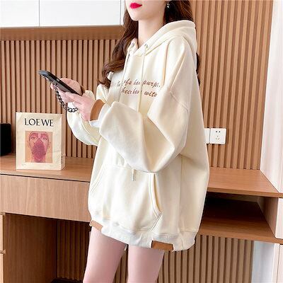 韓国 パーカー フェイク2ピース フード付き スウェット レディース 秋冬 ルーズ ジャケット