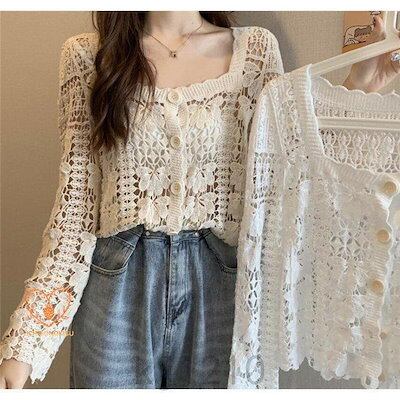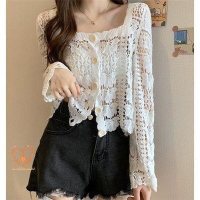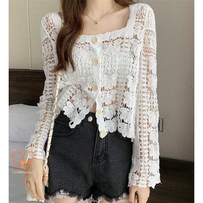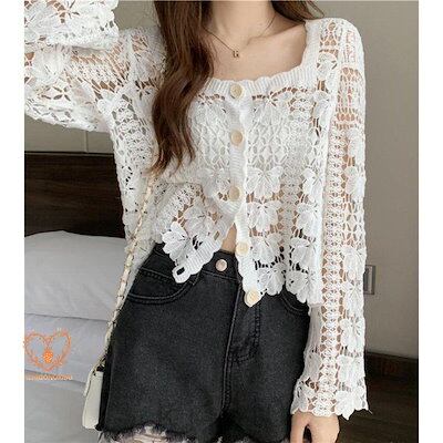 カーディガン レディース ボレロ レース サマージャケット 彫り メッシュ 透けし 夏 春 秋 カーディ
