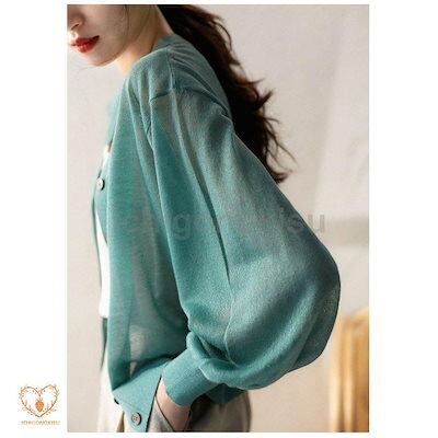 ニットカーディガン レディース 春夏 薄手 uvカット vネック 長袖 ニットガウン 紫外線カット 冷房対策 ガーリー ゆったり 大人 可愛い おしゃれ 20代 30代 40代