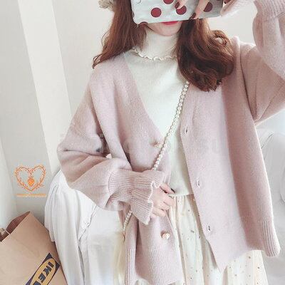 ニットカーディガン レディース 秋冬 長袖ニットトップス コーディガン 無地 vネックカーディガン フレアセーター アウター ゆったり 韓国風 オシャレ 可愛い
