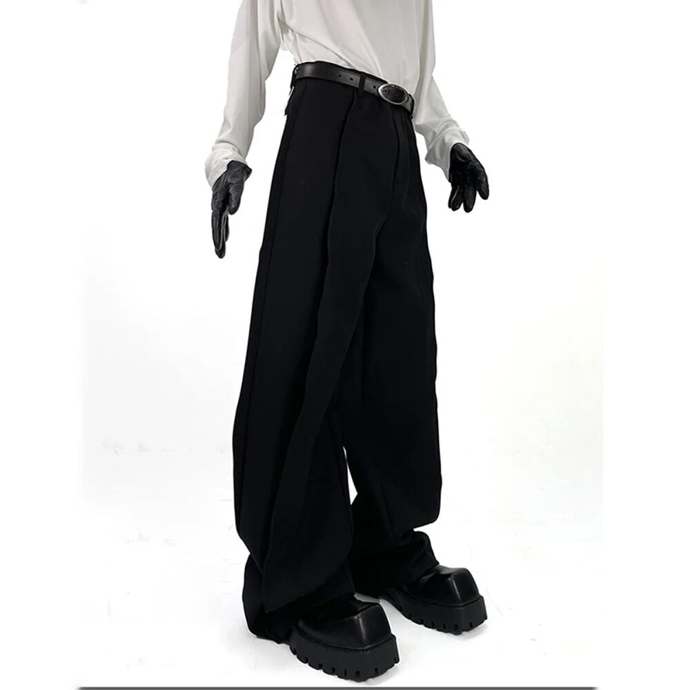 Marouicari-メンズフローリーバギーワイドレッグパンツ、エクストラロング、ブラック、ルーズ、カジュアル、ソフト、グレー、ファッション衣類、春、2024 y2k ボトムス T240901103054_01