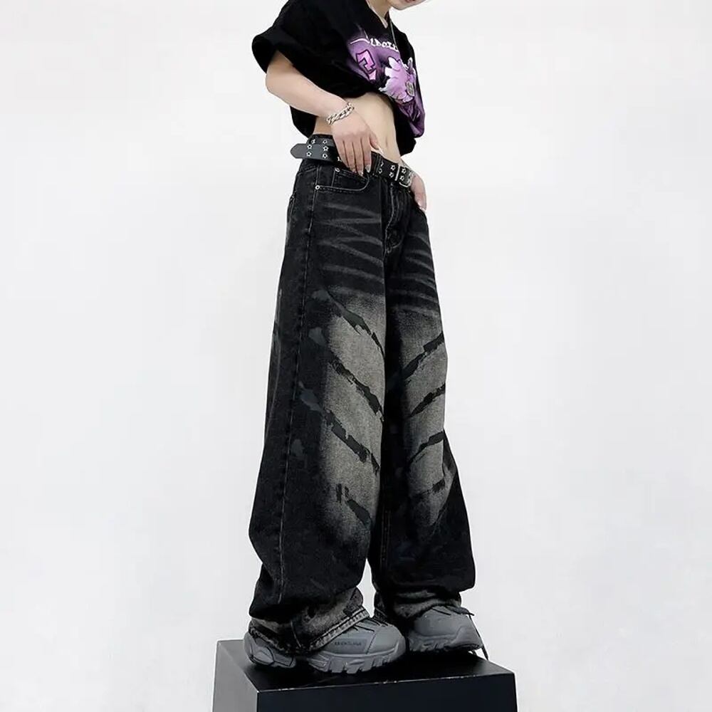 男性と女性のためのアメリカンヴィンテージウォッシュy2kジーンズ、ヒップホップ、カジュアル、ハイウエスト、ルーズ、スリミング、ドロップモップ、ワイドレッグ、ホール、ハイストリートパンツ y2k ボトムス T240901104238_10