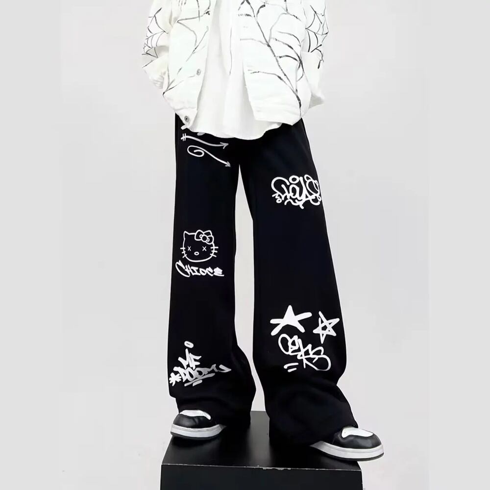 グラフィティパンツ,カジュアル,ストリート,刺personality,個性,夏,韓国版 y2k ボトムス T240901110640_01