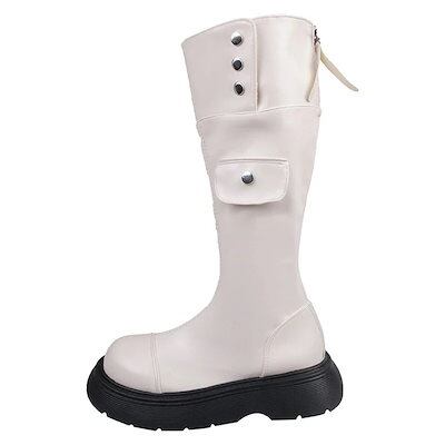 ロングブーツが復活! 秋冬ファッション レディースブーツ 黒の少し太いmmスリム厚底ブーツ ブーツ 秋 ノーニーレトロブーツ ブーティー 美脚 歩きやすい
