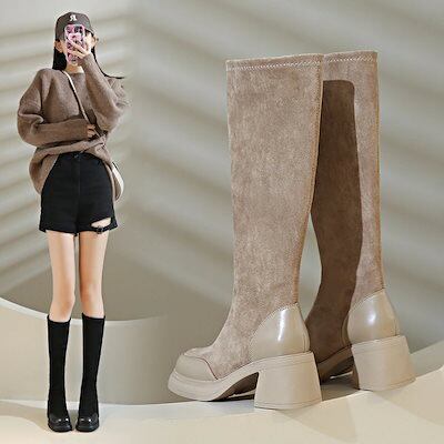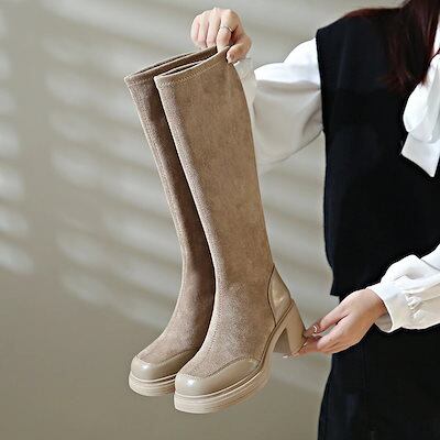 ロングブーツが復活! 秋冬ファッション レディースブーツ スエード 6CM ハイヒール 厚底ブーツ 美足 身長アップ 通勤 通学 疲れない痛くない 通気性 防寒 ブーティー 美脚 歩きやすい