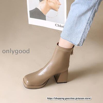22cm~26.5cmブーツ 太ヒール スクエアトゥ 厚底ブーツ レディース シューズ 靴 ショートブーツ チャンキーヒール 厚底 30代 通学通勤 脚長 ハイヒール
